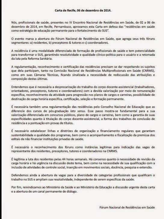 4 - Carta IV ENRS - Recife - 02 a 06/12/2014